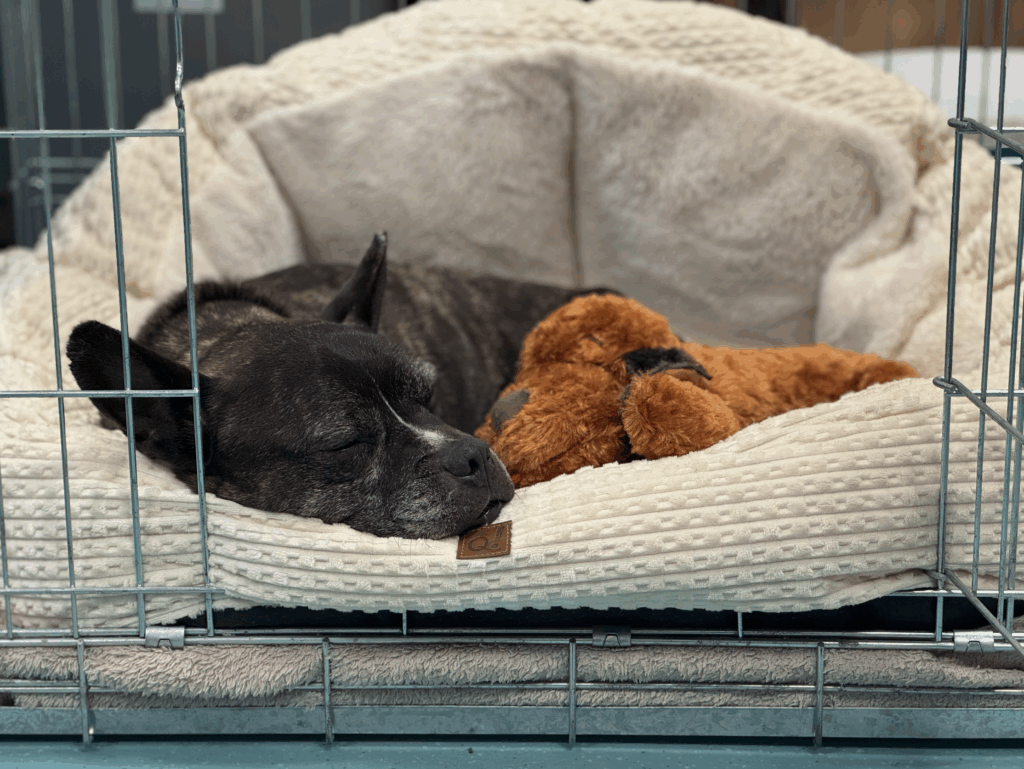 Toch worden zijn verdere ongemakken duidelijker. Het likken aan zijn gewrichten neemt toe, zelfs mét pijnstilling. Zijn oude lichaam komt in de ochtenden moeizaam op gang, alsof zijn spieren en botten tijd nodig hebben om te ontwaken. Elke avond kruipt hij met zijn kruik tegen zich aan in zijn mandje, veilig naast mijn bed. En ’s ochtends? Dan blijft hij het liefst nog even liggen, precies op die warme plek waar hij zich geborgen voelt.